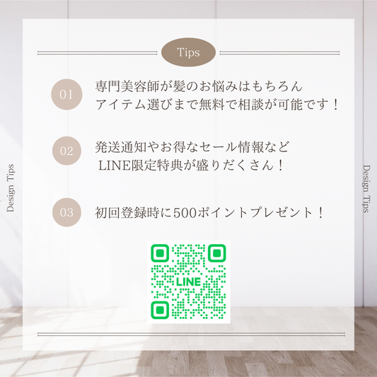 LINEのID連携をしていただきますと、限定クーポンや発送通知を受け取れる他、LINE上で美容師へ相談も可能になります。
